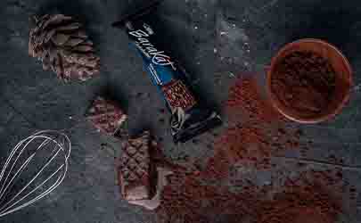 Wafer stuffed and coated with dark chocolate.